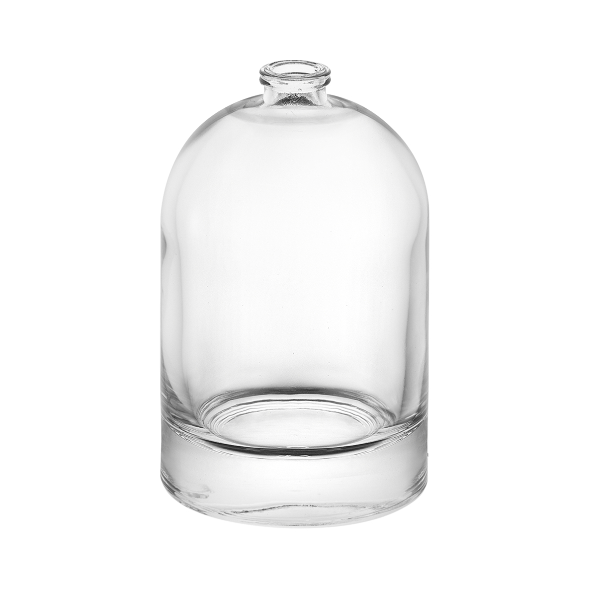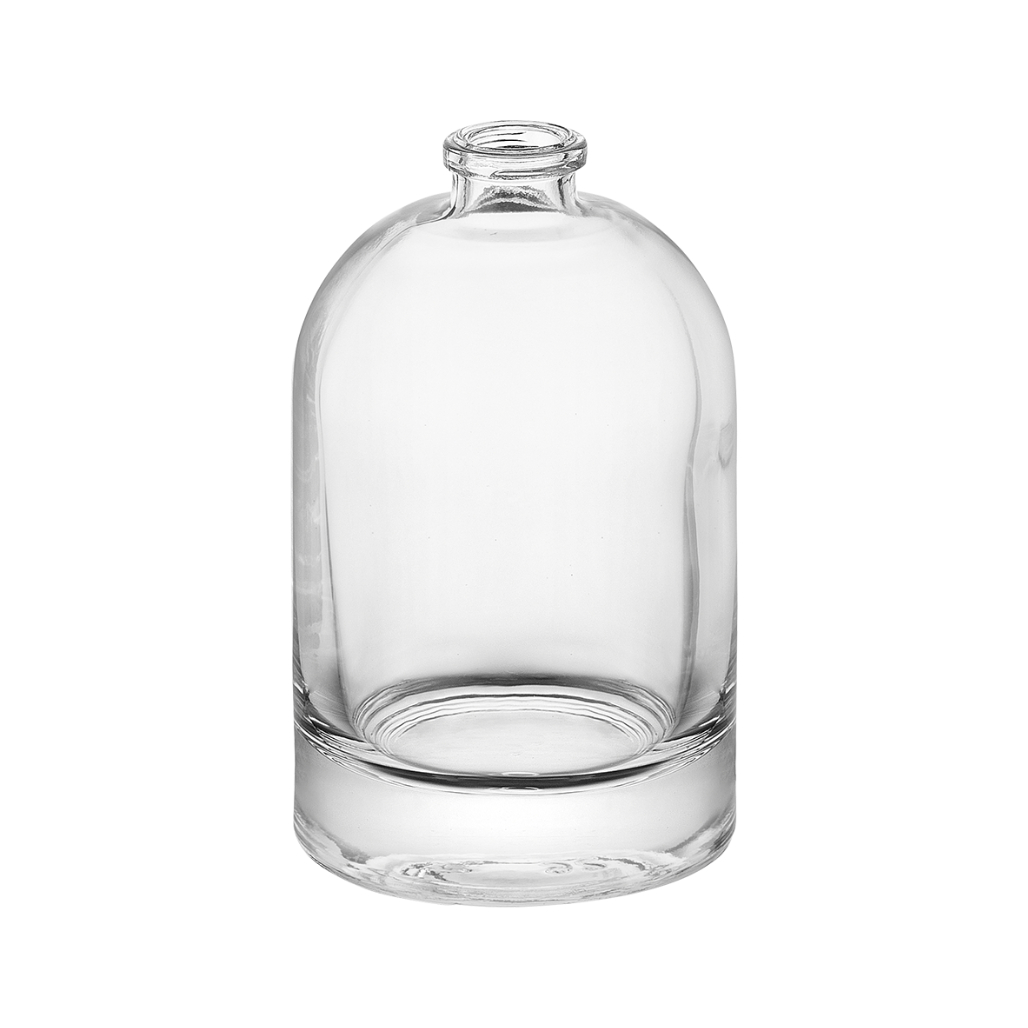 Frasco cilíndrico elegante con base gruesa que aporta estabilidad y una percepción premium.