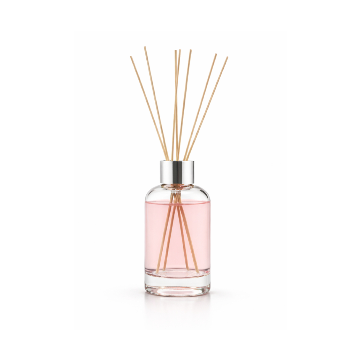 Frasco cilíndrico compacto con diseño elegante y apertura amplia, ideal para sistemas mikado.