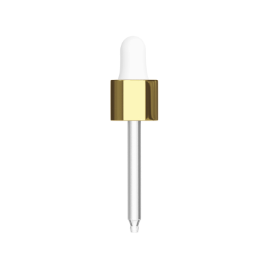 Cuentagotas con collar de aluminio de diseño sólido y elegante, pensado para reforzar la percepción de calidad del producto.